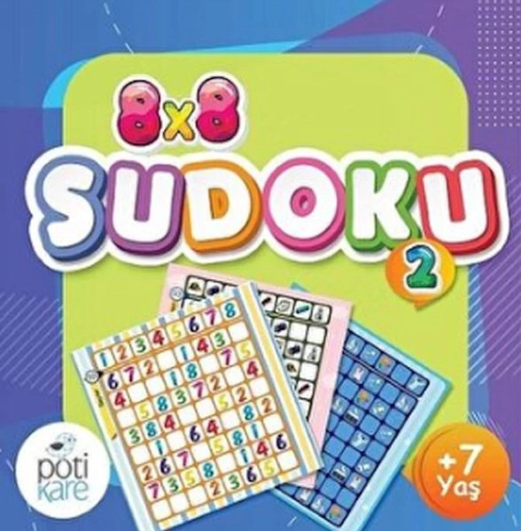 7 yaş üzeri çocuklar için hazırlanan 8x8 bulmacalar, belli bir temadaki 8 resmin veya 8 rakamın 64 kareye, yerleştirilmesini amaçlar. Kitap, 10 farklı Sudoku bulmacasından oluşmakta ve eksiklerin tamamlanacağı çıkartmalar kitabın ortasındaki 2 sayfada bulunmaktadır.