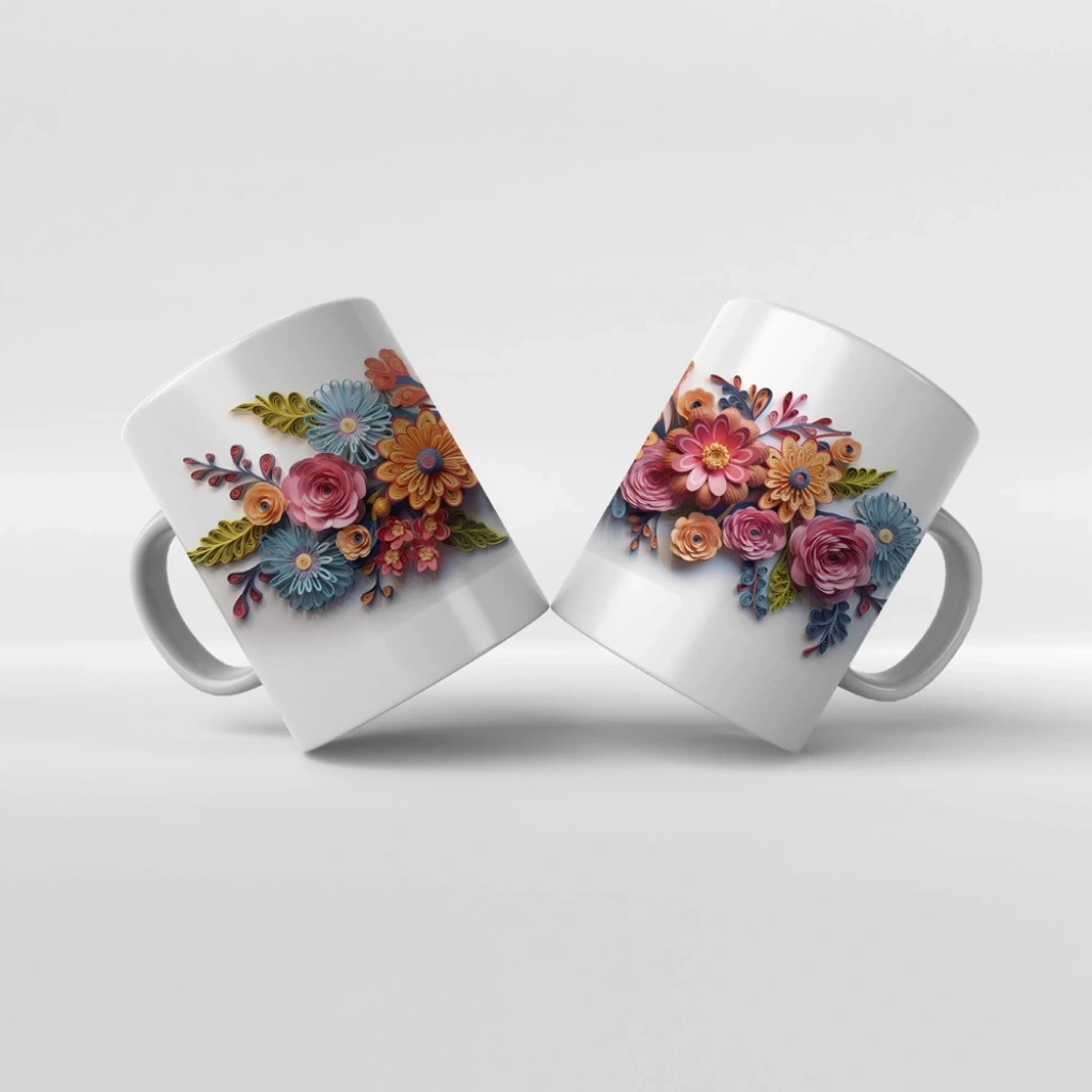 Baskılı Kupa Baskılı Çiçek Teması - 20